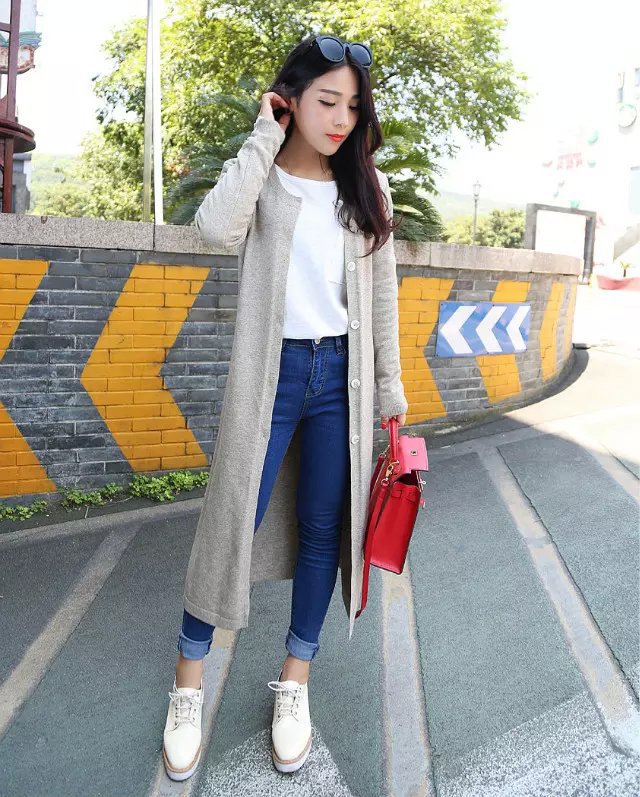 秋裝新款韓版女裝長款毛衣外套V領薄開衫時尚百搭針織衫 /