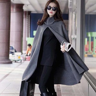 歐洲站大碼女裝啊 韓范寬松范無袖毛呢斗篷外套披肩 毛呢大衣 /
