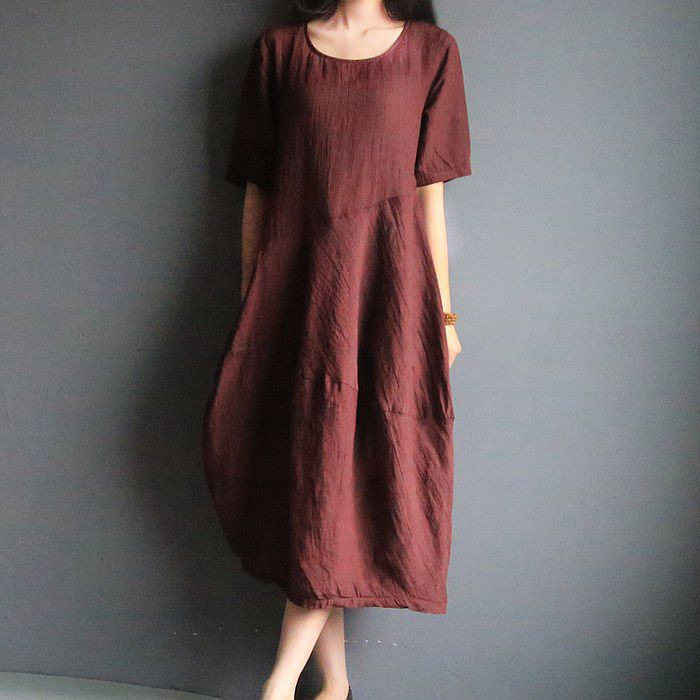 修身顯瘦三分袖 文藝范 原創(chuàng)棉麻女裝 亞麻連衣裙長裙 /