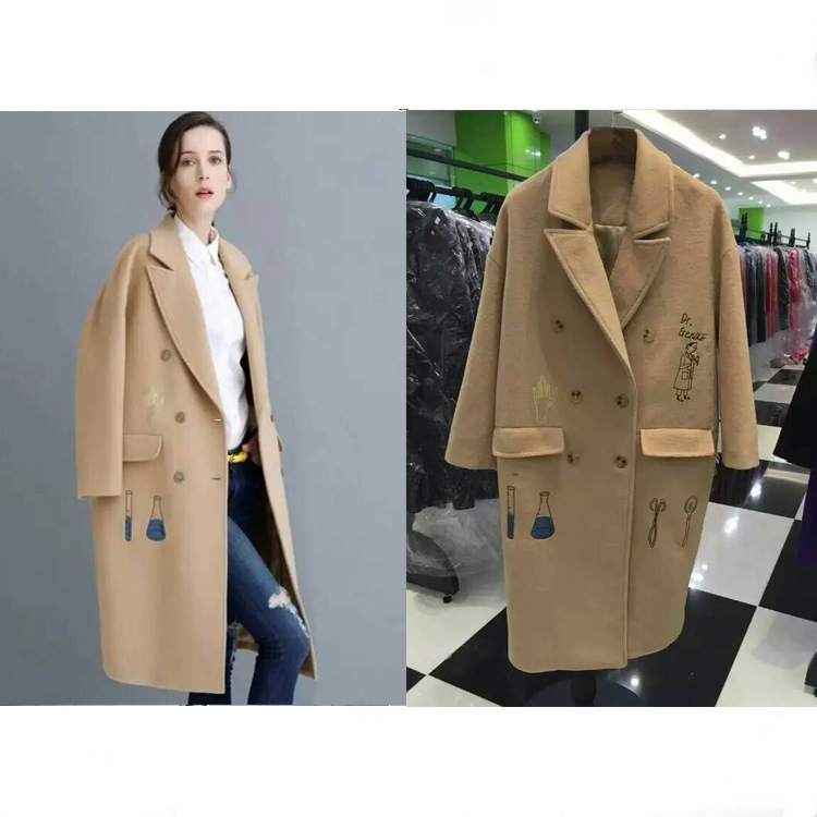 2015冬季新款女裝 歐美大牌中長款時尚繡花大衣 歐洲站毛呢外套女 /