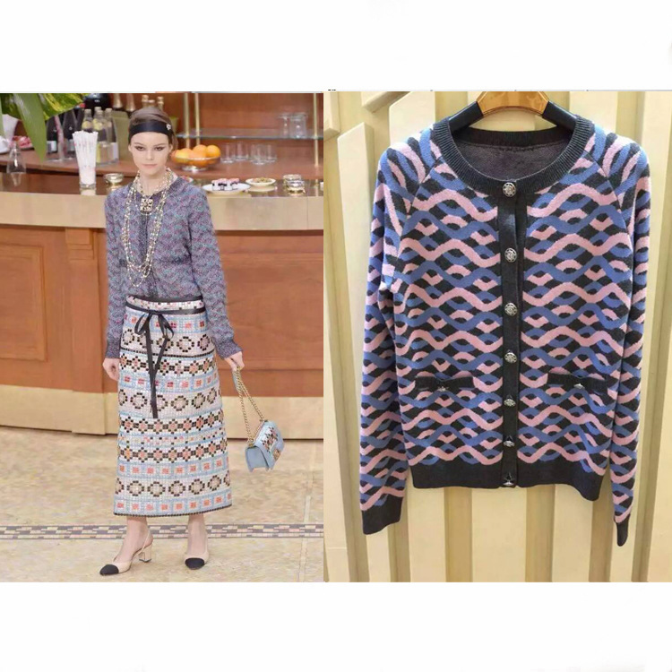2015秋冬新款女裝 歐美時尚大牌走秀款 小香風(fēng)針織開衫毛衣外套 /