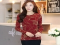 2015秋裝新款玫瑰時尚女裝圓領(lǐng)網(wǎng)紗蕾絲打底衫大碼長袖T恤 /