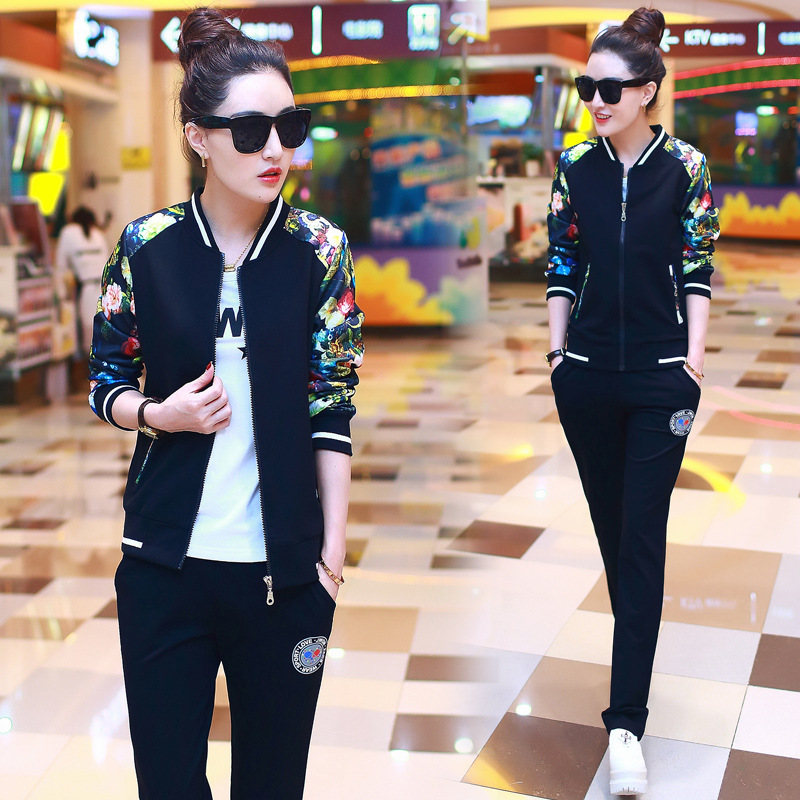 2015實拍運動休閑套裝韓版衛(wèi)衣三件套加厚加絨秋冬季顯瘦印花女裝 /