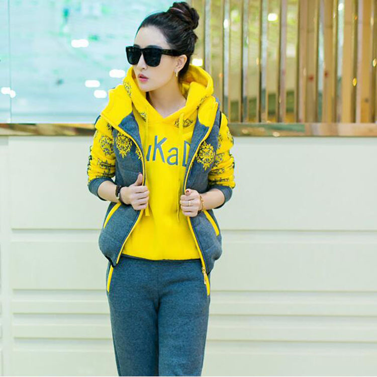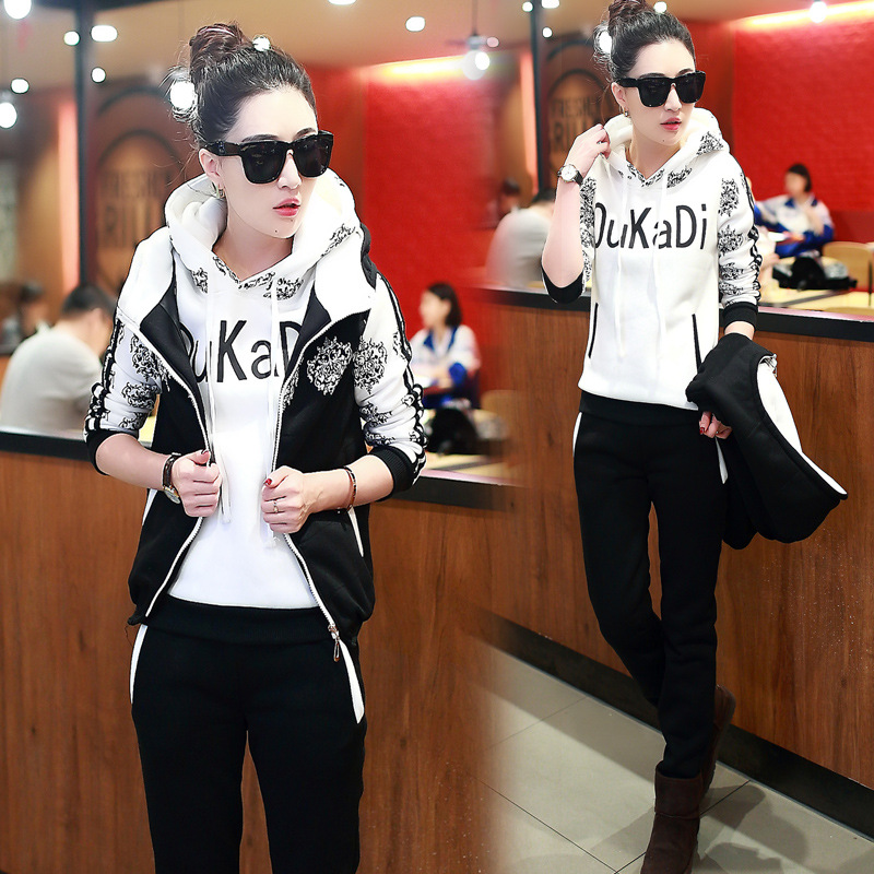 2015秋冬新款女裝加絨印花時尚氣質(zhì)休閑衛(wèi)衣純棉運動套裝三件套 /