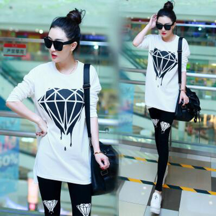 2015韓版秋裝新款女字母印花中長衛(wèi)衣潮品寬松套裝 運動休閑套裝 /