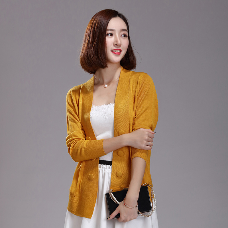 韓版潮流時尚純色長袖女式針織開衫 修身新款紐扣裝飾秋季女裝 /