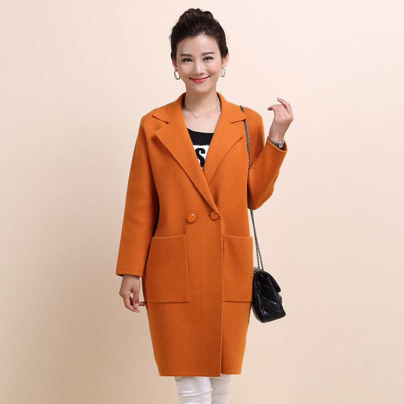 2015秋冬韓版單排扣女式羊絨雙面尼大衣中長款圓領口袋呢大衣外套 /