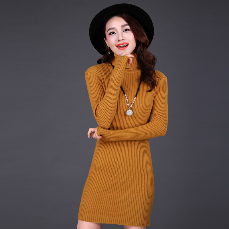 15年秋冬新款批發(fā)高領(lǐng)套頭純色中長款毛衣打底針織女衫保暖修身女 /