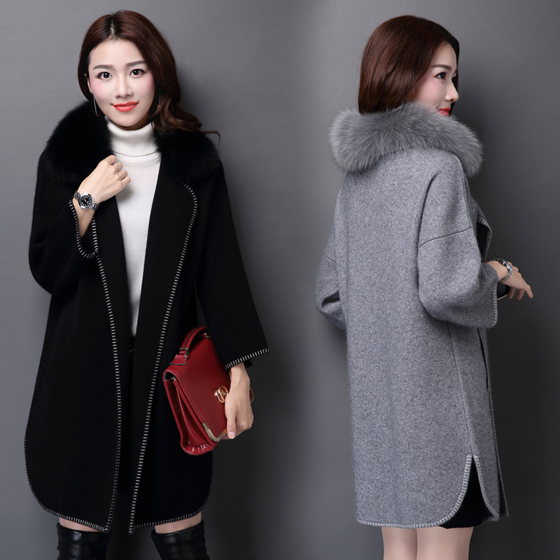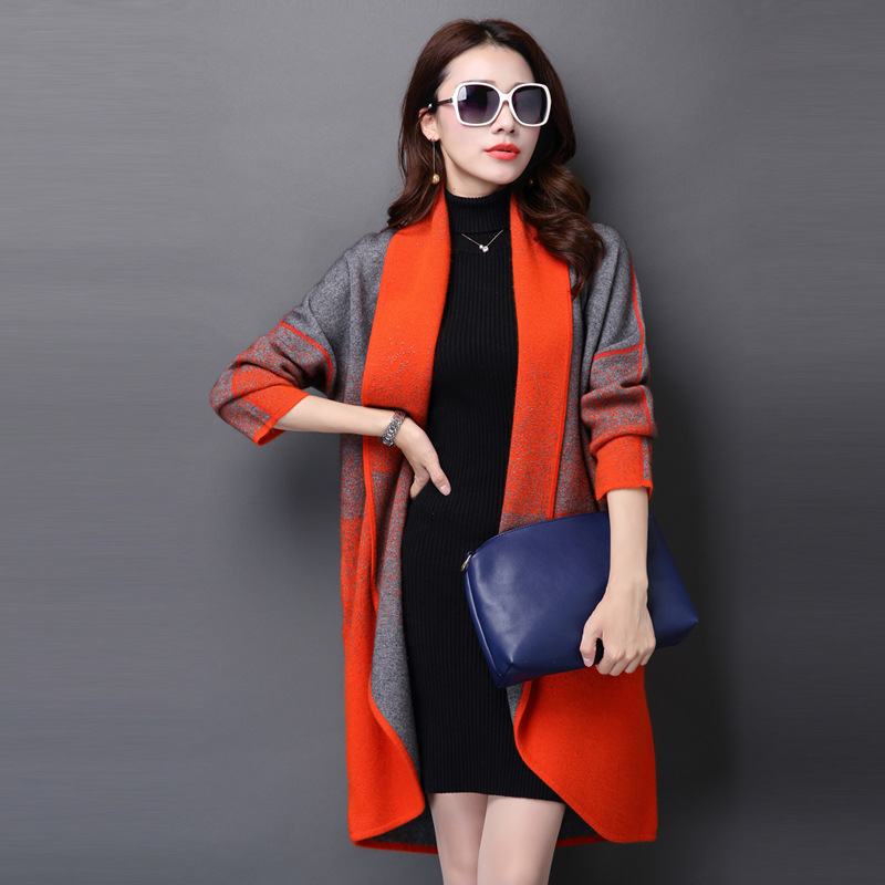15年秋冬新款撞色翻領(lǐng)針織開衫貂絨大衣加厚外套風(fēng)衣毛衣女韓版 /
