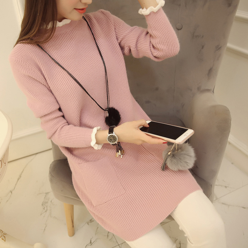 現(xiàn)貨批發(fā)廠家2015秋裝新款韓版圓領(lǐng)打底衫中長款加厚毛衣 /