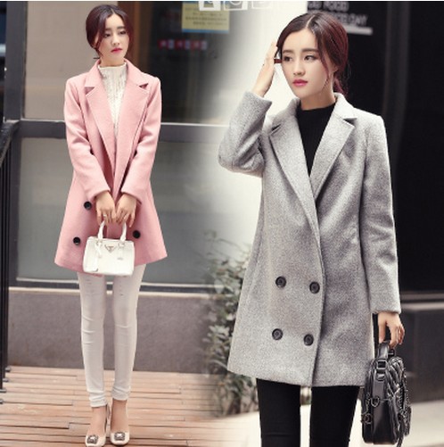 一件代發(fā)2015冬季新品純色白搭?yuàn)A棉毛呢外套繭型寬松韓版毛呢大衣 /
