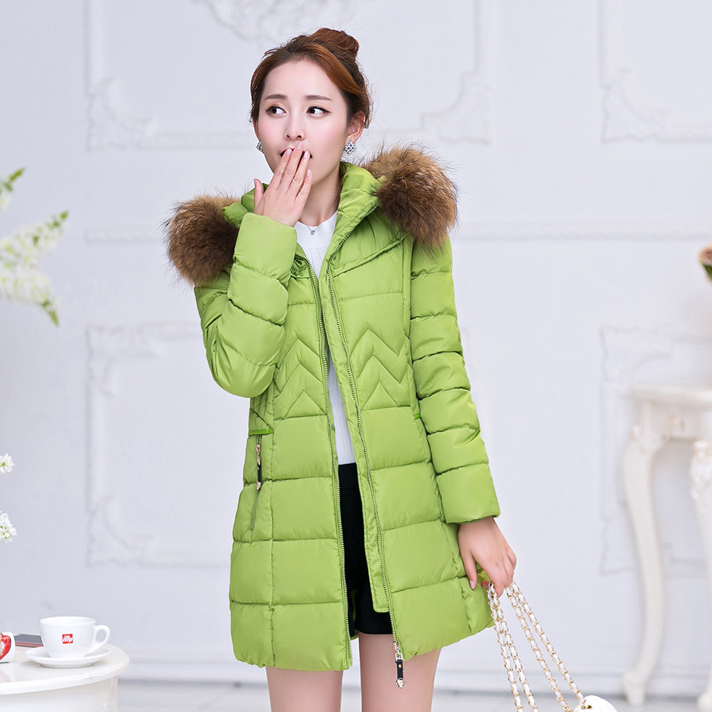 廠家直銷2015冬季新款連帽大毛領大碼修身中長款棉衣女加厚外套 /