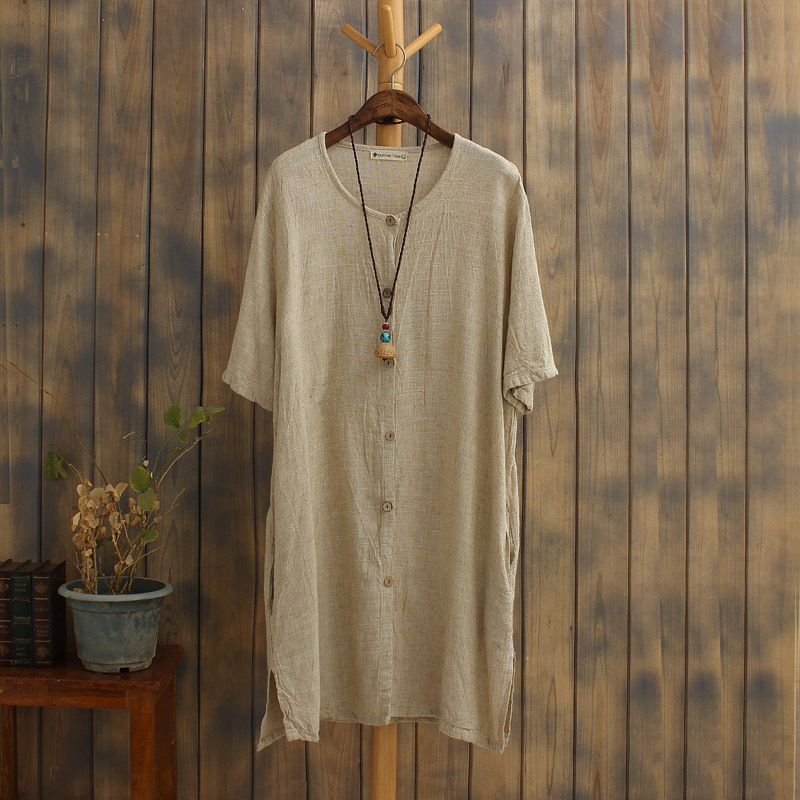 2015麥穗原創(chuàng)棉麻新款女裝 民族風(fēng)原麻色寬松開衫 女式短袖棉麻衫 /