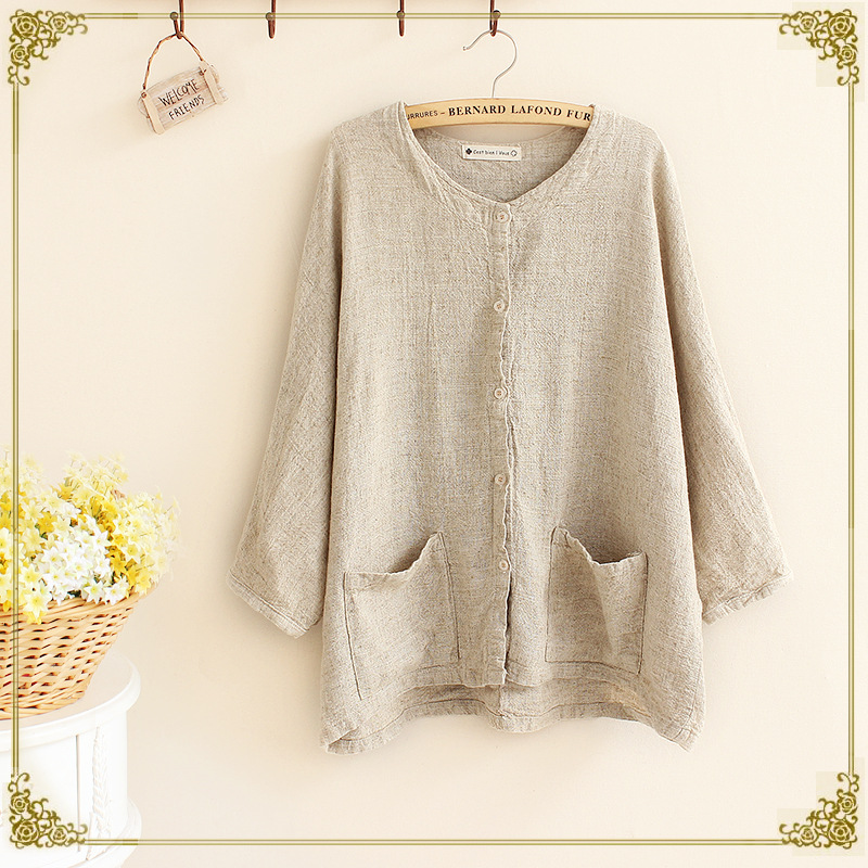 麥穗原創(chuàng)2015新款女裝 純色棉麻文藝開衫上衣 寬松棉麻衫亞麻開衫 /