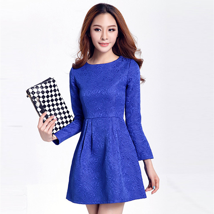 2015春裝新款歐美大牌小香氣質(zhì)浮雕立體凸面花紋花苞連衣裙打底裙 /