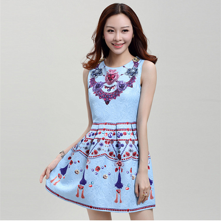 2015春夏新款韓版女裝氣質(zhì)印花小清新印花連衣裙背心無袖打底裙女 /