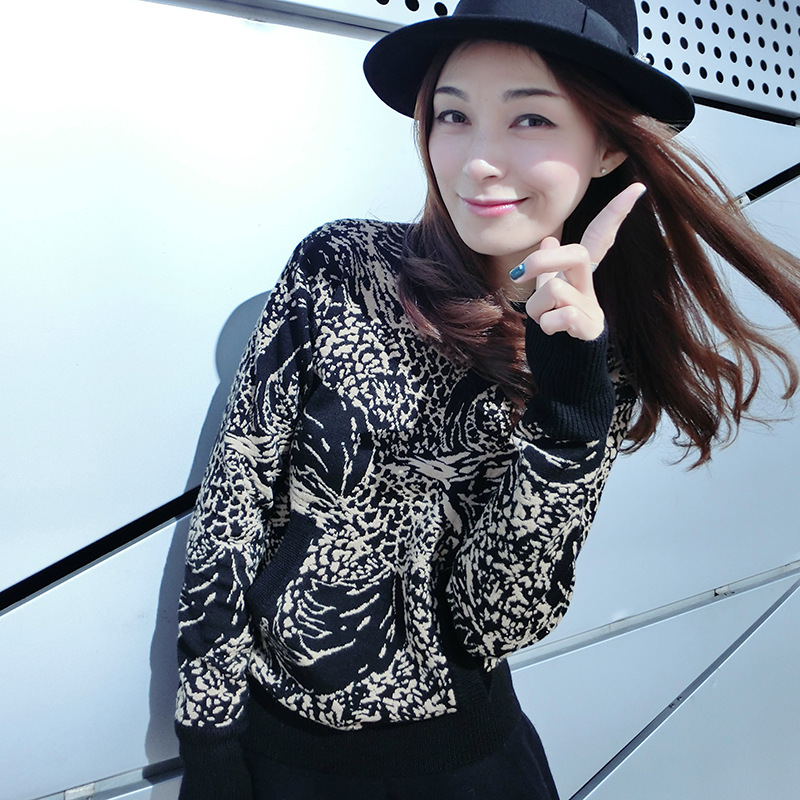 2016早春新款 女式套頭針織衫豹紋毛衣 /