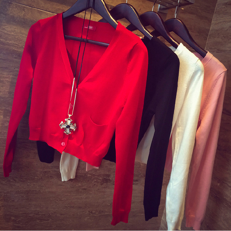 2015秋裝新款韓版毛針織衫短款長(zhǎng)袖開(kāi)衫薄款針織小外套毛衣女外搭 /
