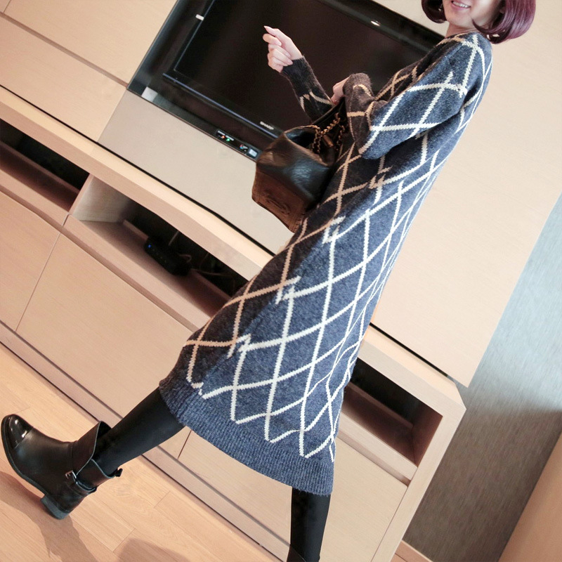 菱形長(zhǎng)款毛衫打底衫女秋冬新品套頭毛衣針織衫修身打底衫歐美大牌 /