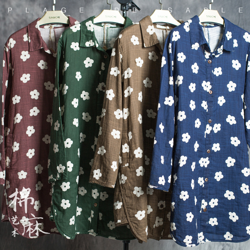 棉麻女裝生產批發(fā) 森系文藝范開衫襯衣 原創(chuàng)大碼女裝襯衫 /