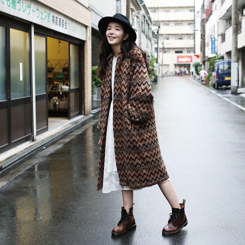 2015秋冬新款日系復(fù)古原宿風(fēng)中長款毛衣外套寬松蝙蝠袖長款毛衣 /