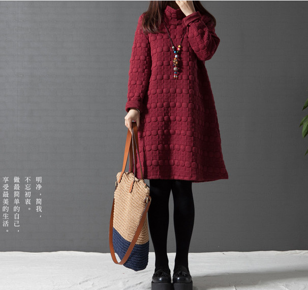 2015秋冬新款文藝范休閑大碼女裝長袖高領打底連衣裙 /