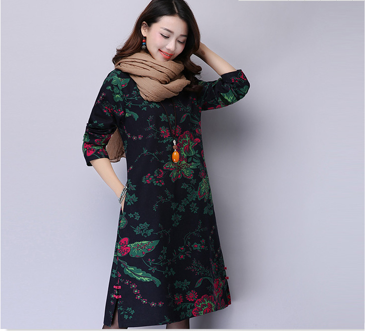 簡介: 貨源類別現(xiàn)貨 主圖來源其他來源 風格民族 圖案印花 工藝印花/印染 產(chǎn)地廣州 庫存類型整單 款式基本款 組合形式單件 裙長長裙 裙型大擺型 領型圓領 袖型常規(guī)袖 袖長長袖 腰型寬松腰 衣門襟套頭 流行元素印花 上市年份/季節(jié)2015秋季 面料名稱棉麻 主面料成分棉