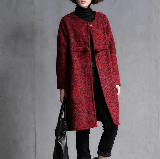 2015冬季新款羊毛呢子女裝寬松大碼盤扣毛呢大衣中長款外套 /