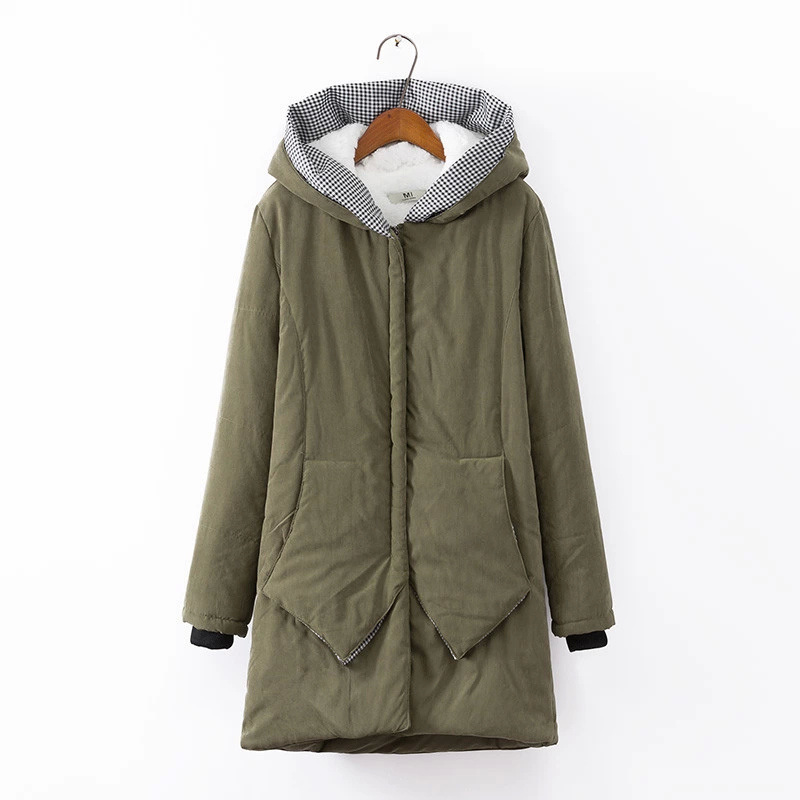 外貿(mào)大碼女裝胖MM秋冬連帽可拆毛領(lǐng)中長款冬季保暖收腰棉衣棉服潮 /