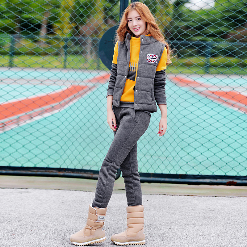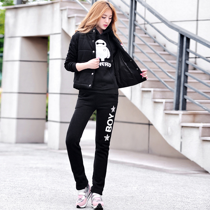 2015秋冬新款加絨加厚女士衛(wèi)衣三件套女裝韓版修身長袖運動套裝 /