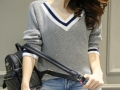 秋冬新款韓版V領(lǐng)短款套頭毛衣 寬松針織衫女裝大碼長袖打底衫 /