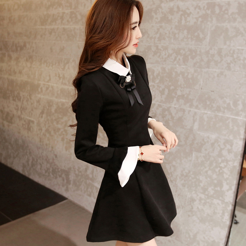 2015秋冬新款女裝毛呢時尚長袖修身打底連衣裙 /