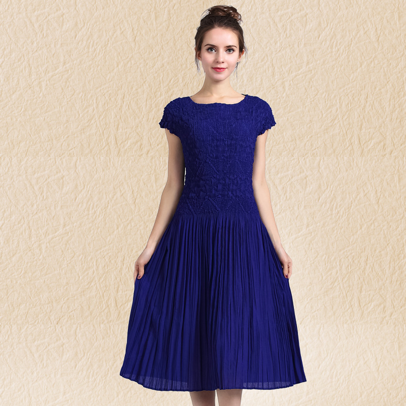 三宅一生時(shí)尚褶皺連衣裙秋夏新款 歐美百搭寬松顯瘦連衣裙壓褶裙 /