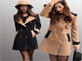 2014秋冬裝新款女裝雙排扣毛呢外套 韓版修身翻領(lǐng)呢子大衣 /