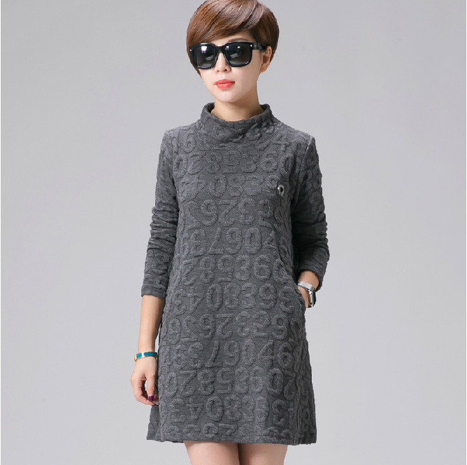 歐洲站 2015秋冬新款長袖打底衫女 中長款連衣裙 /