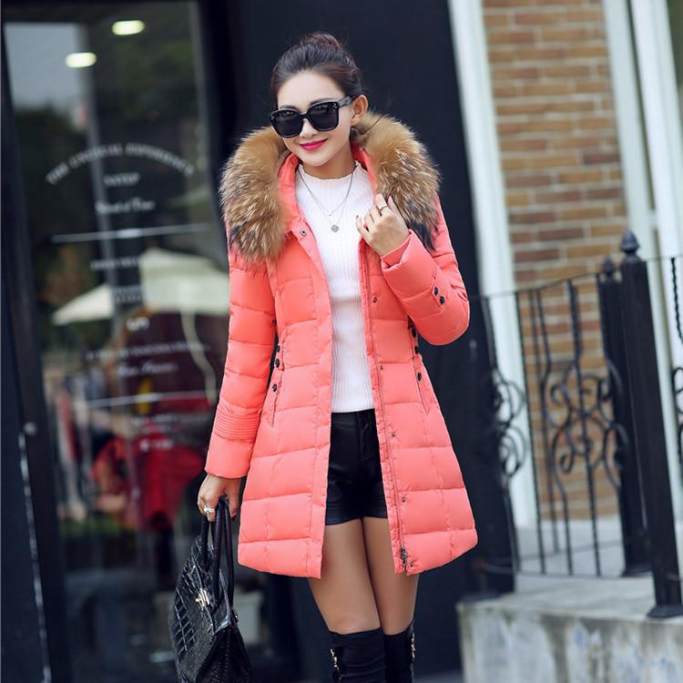 2015冬季中長(zhǎng)款韓版加厚修身顯瘦大毛領(lǐng)羽絨服女冬裝外套 /