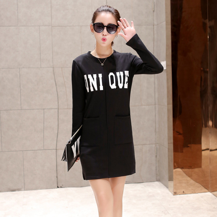 中長款加絨加厚休閑長袖日韓衛(wèi)衣裙字母印花圓領寬松顯瘦連衣裙冬 /