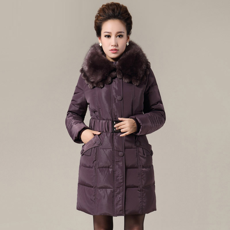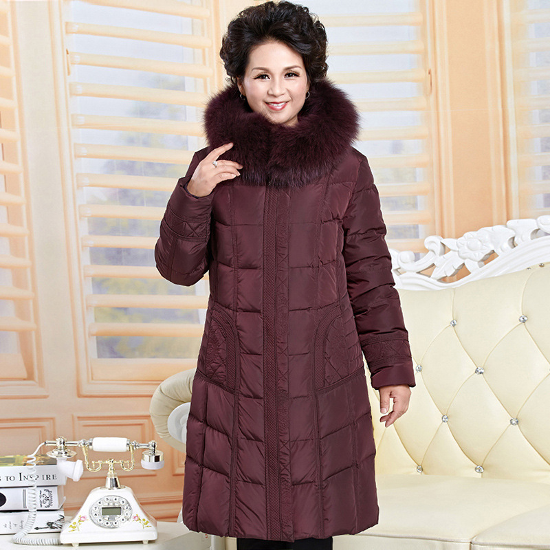 2015新款女士中老年羽絨服長寬連帽毛領外套加肥加大碼厚款媽媽裝 /
