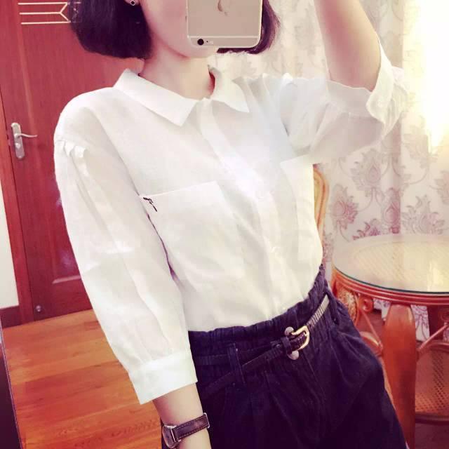 簡(jiǎn)約小翻領(lǐng)純色襯衫女長(zhǎng)袖2015秋文藝棉麻上衣寬松娃娃領(lǐng)顯瘦襯衣 /