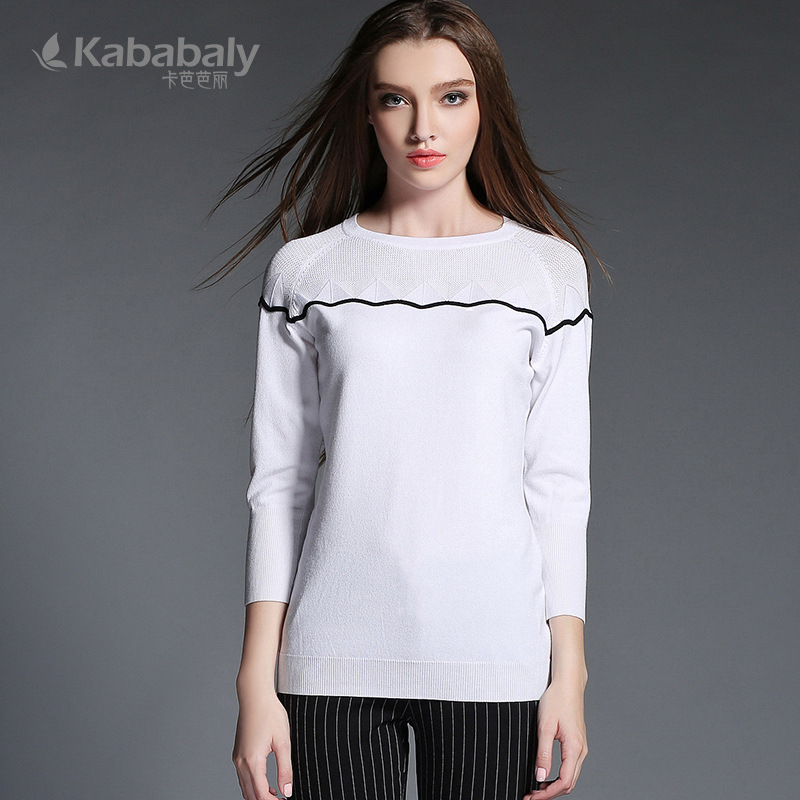 拼接七分袖女針織衫現(xiàn)貨批發(fā)2015秋季歐美新款修身顯瘦套頭針織衫 /