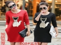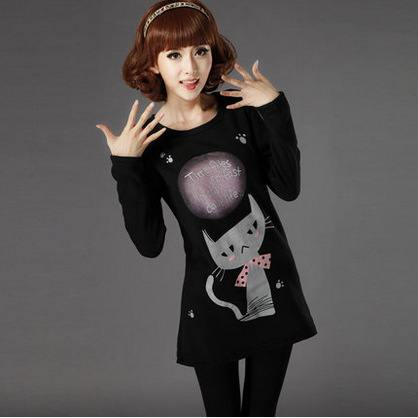 冬季學院風長袖卡通加絨打底衫加厚保暖中長款女T恤上衣 /