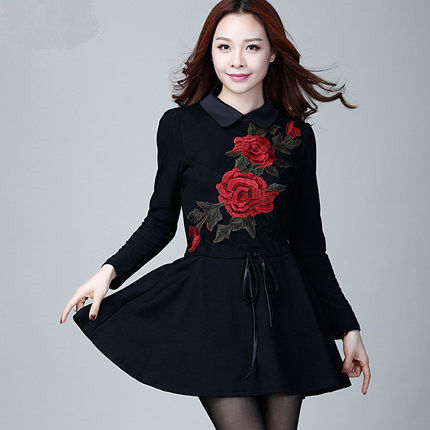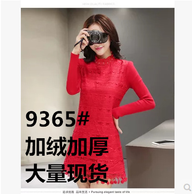現(xiàn)貨2015秋冬大碼女裝加厚加絨蕾絲連衣裙中長款打底衫女 /