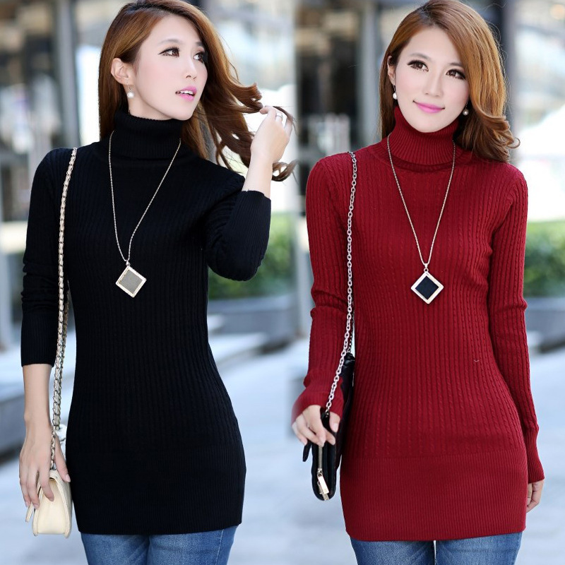 2015秋冬韓版高領(lǐng)麻花女針織衫修身打底毛衣加長保暖打底衫女批發(fā) /