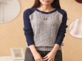 1318新款學(xué)院風(fēng)拼色毛衣女 寬松型撞色套頭針織衫外套批發(fā) /