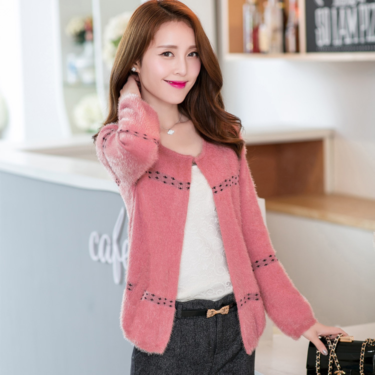 1109實(shí)拍2014秋冬新款韓版提花點(diǎn)子長毛小外套女裝針織衫披肩 /