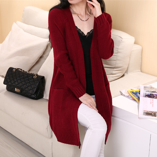 1094實(shí)拍2014韓版新款女裝中長款針織開衫休閑外套 /