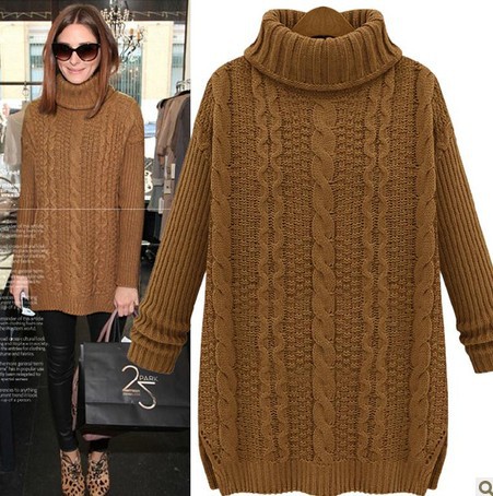 569新款中長款寬松套頭毛衣女 高領(lǐng)麻花針織衫女 加厚復(fù)古毛衣女 /