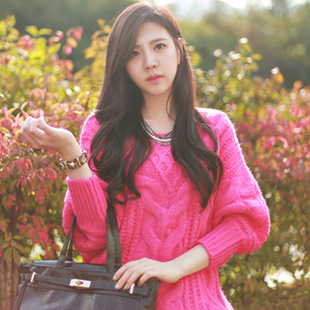 2015春季爆款韓版新款幾何菱形麻花蝙蝠寬松圓領(lǐng)套頭毛衣女加厚 /