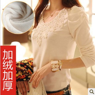 秋冬新款女裝 泡泡袖韓版修身打底衫 女 加絨加厚6272 /