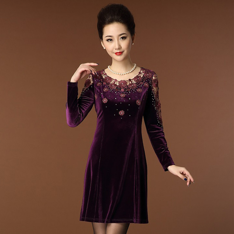 秋裝連衣裙韓版新款大碼女裝精品蕾絲金絲絨連衣裙 1件起批 /